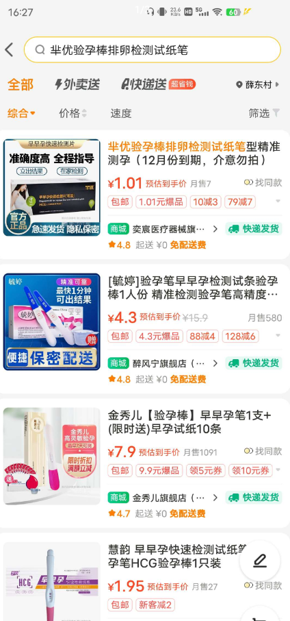 点击买药,搜索 芈优验孕棒排卵检测试纸笔