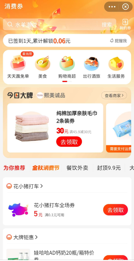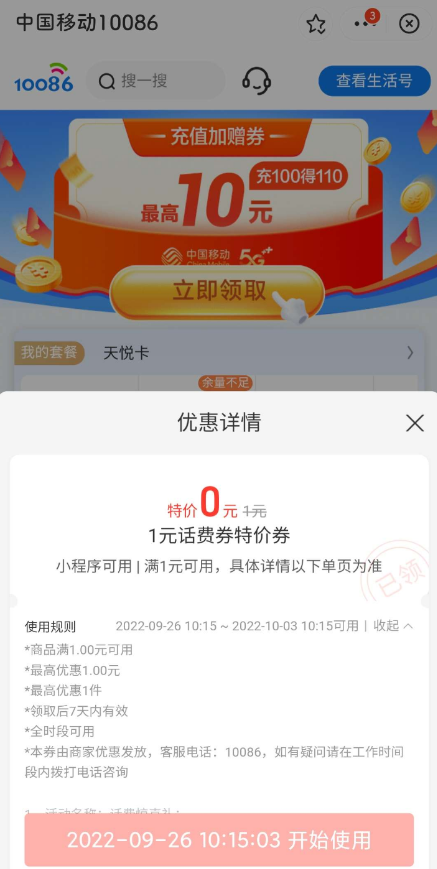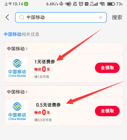 【活动介绍】支付宝,搜消费券,然后搜中国移动,直接领取