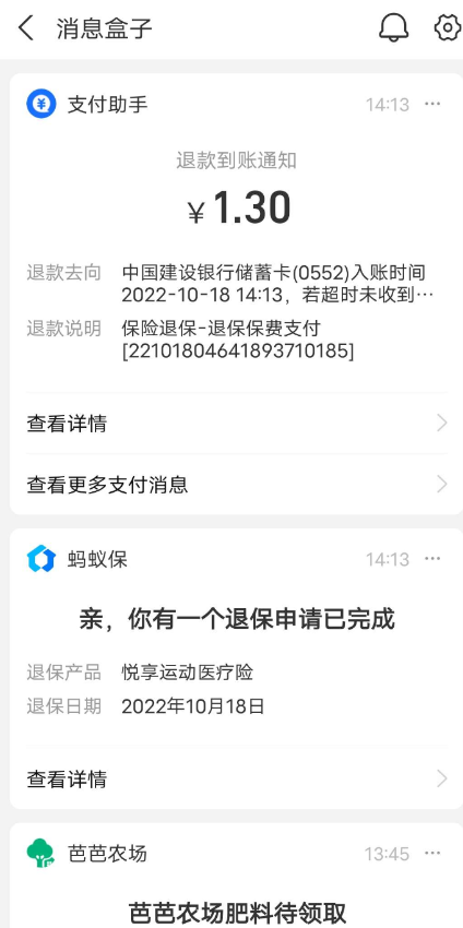 【活动规则】完成简单的投保任务->返回后在支付宝卡包中查看红包->用掉红包后再退保即可!