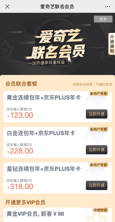 爱奇艺年卡+京东plus年卡123元http://cashier.iqiyicom.cn/cashier/cashierOffline/cashierOffline.html