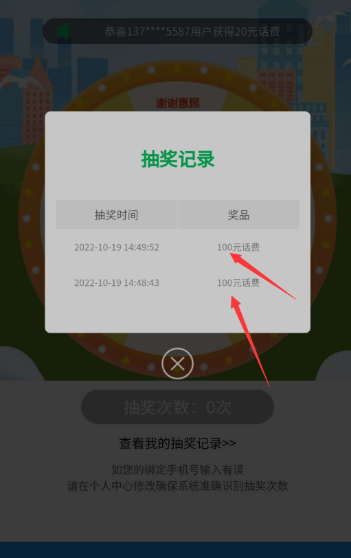 公众号邮政银行抽奖中10元话费