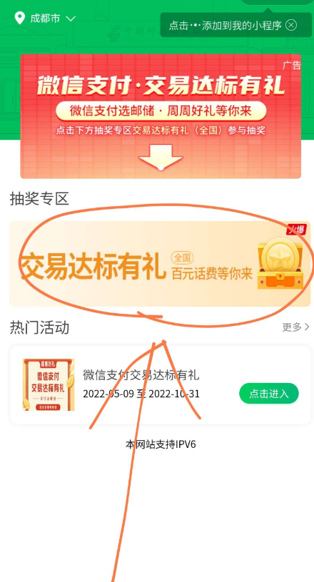 活动介绍:邮政银行交易达标抽奖大概率中话费,新手更容易中