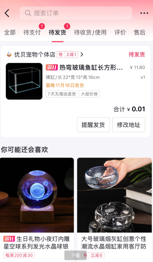 抖音一分钱撸一个鱼缸