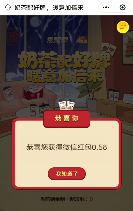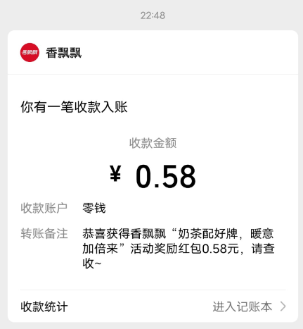 首页 > 活动线报 > 香飘飘抽红包活动 亲测0.58元