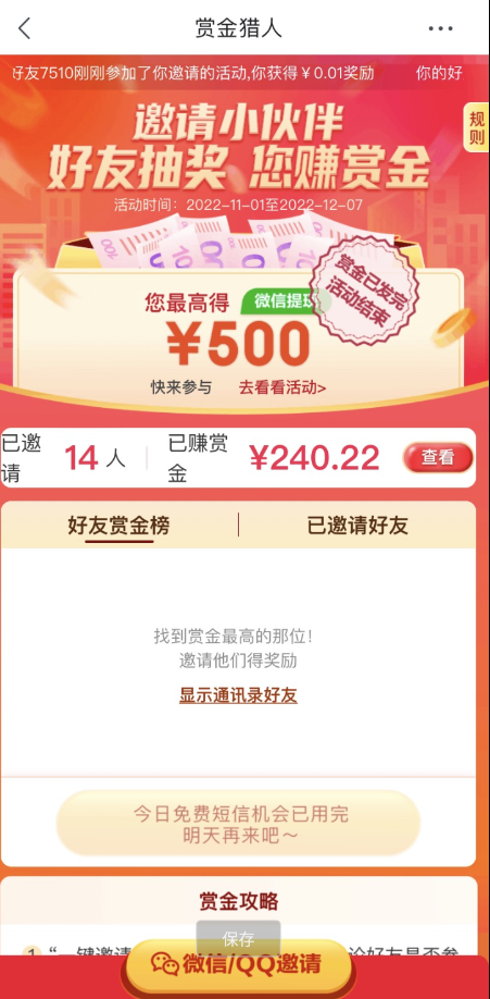 无限秒到20现金 大号先走链接支付0.01出码 然后拉小号