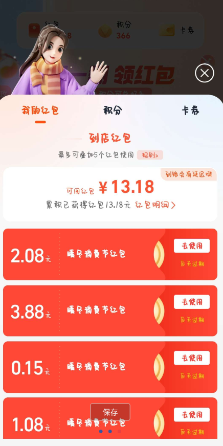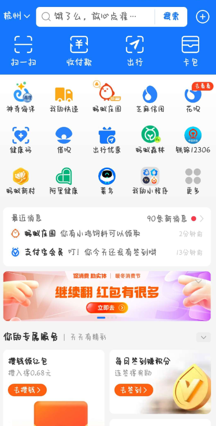 支付宝首页轮播翻红包