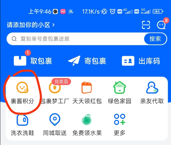 点击首页找到裹酱积分,