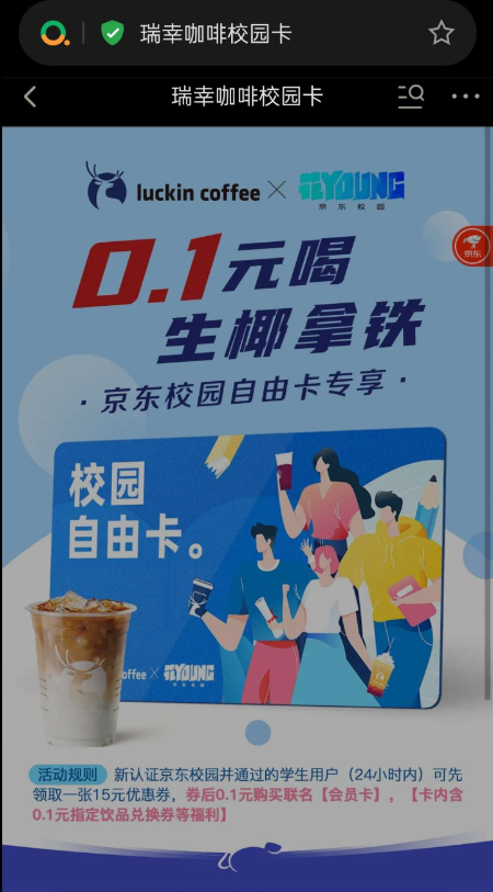 【活动介绍】京东学生0.1元喝瑞幸生椰拿铁