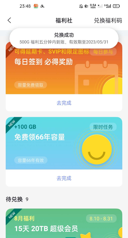 阿里云盘两周年领500G容量