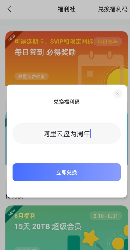 【参与方式】阿里云盘APP->我的->福利社->右上角输入兑换码“阿里云盘两周年”领500GB容量