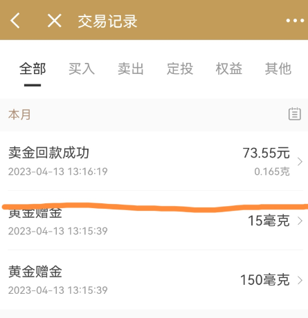 领取30金贴 和0.16g黄金 黄金可以直接卖掉换现银大约70左右 30金贴是立减劵