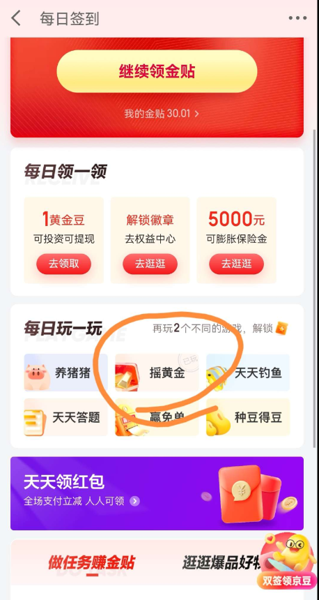 京东金融APP 首页-签到-下拉有个领30金贴的 去完成开户