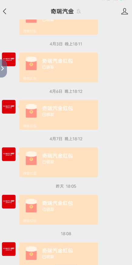 微信关注 奇瑞汽金 公众号领1.88-18.8红包
