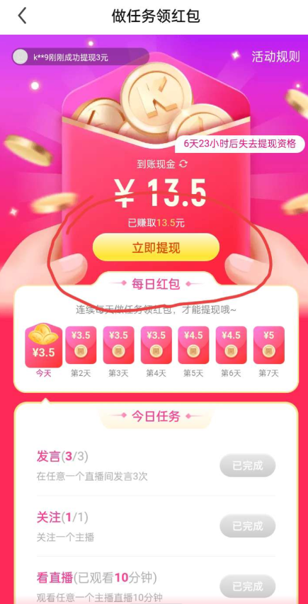 要从酷狗音乐的弹窗去下载酷狗直播,才有红包