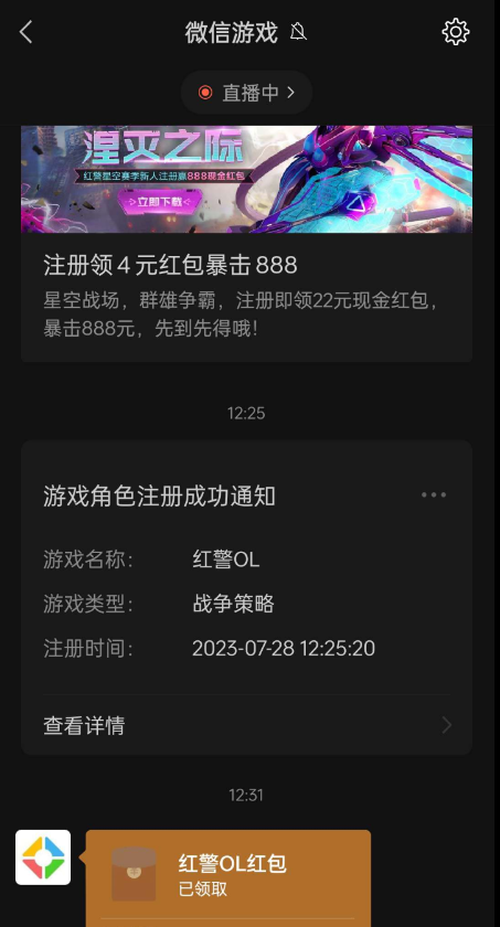 微信游戏,红警OL注册必有4元红包活动