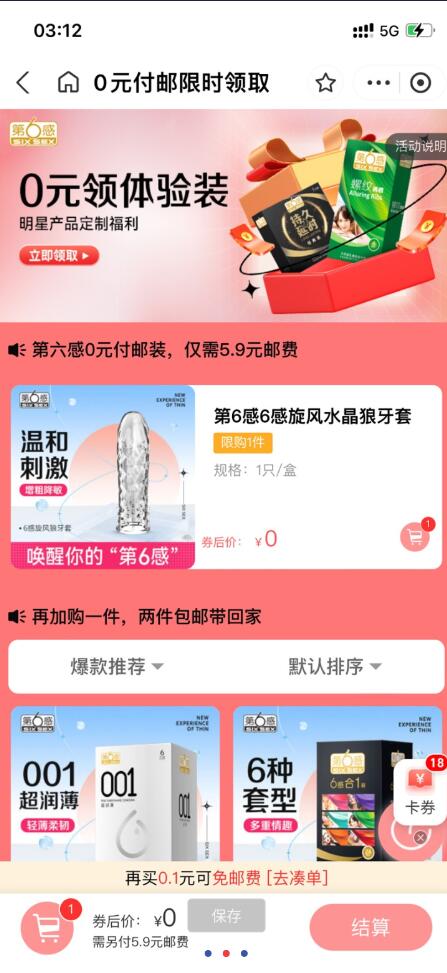 【参与方式】支付宝app→消费券→搜第六感官方旗舰店→首页→右下角领取优惠券~~付款的时候要用到扭扭节红包,不够的去多摇几次