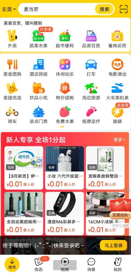 首页 > 活动线报 > 美团新用户首单0.01元购物(包邮)