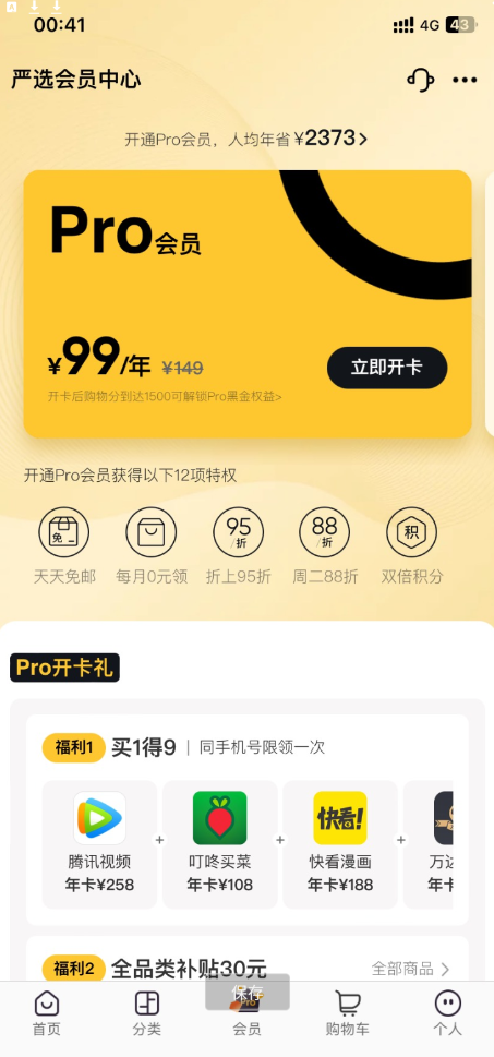 2、支付99元开卡,获得9个会员,可以一步领取