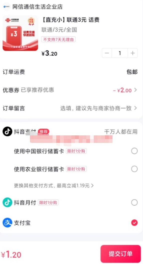 返回抖音APP首页右上角搜索【话费】找到自己运营商10元,小编是联通亲测成功。