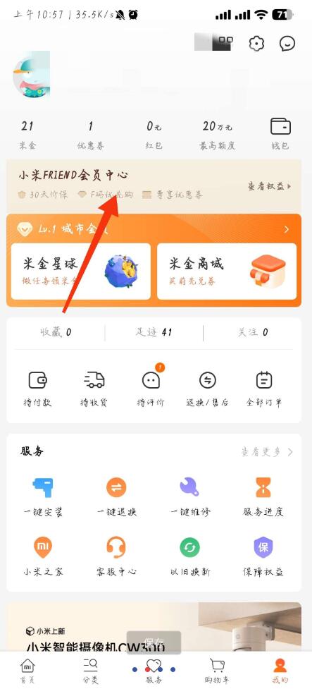 打开小米商城点我的