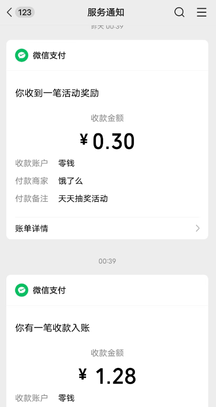 我自己三个号都中了,一个号1.2一个号0.3还有一个号中了没给,