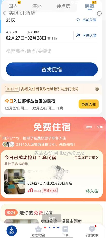 首先打开美团点酒店再点民宿下面会出来免费住抽奖