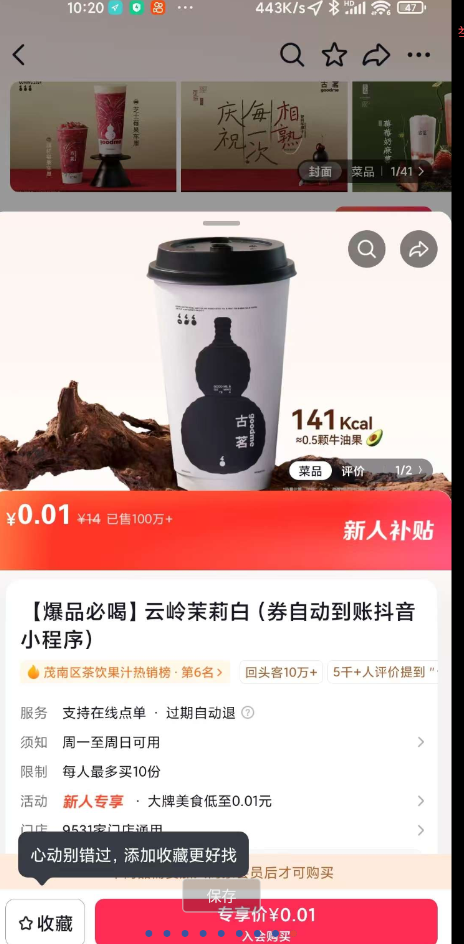 抖音团购撸0.01奶茶活动
