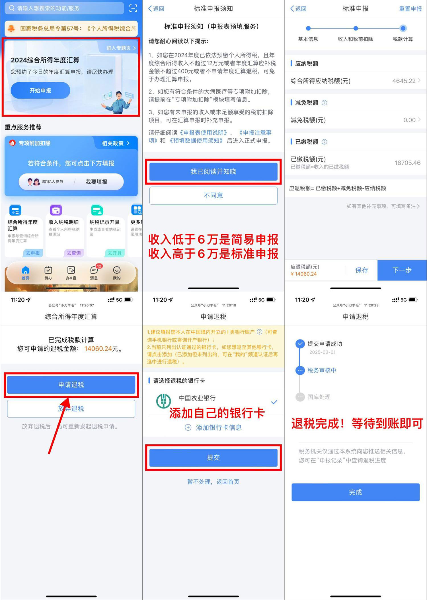2、首页点“综合所得年度汇算”进入,收入大于6万自动切换到标准申报,小于6万则是简易申报
