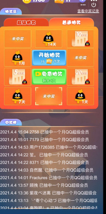 另外首页还有签到抽奖,这个是随机抽一个月或者一年会员,也分两个 一个是超级抽奖1次,一个普通抽奖3次