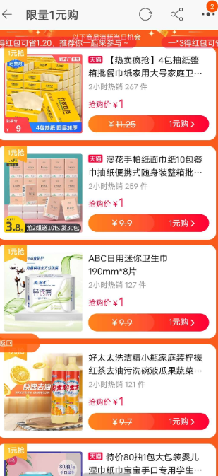 【活动介绍】快省优品一元购,每天免费领取淘礼金,可以撸垃圾袋,拖鞋,袜子 等等 每天20点还有三款超值货 也是一元
