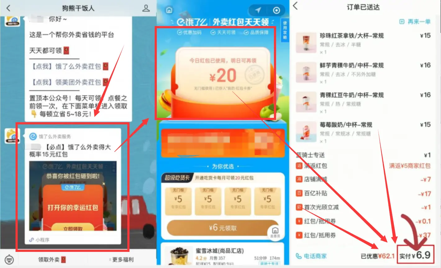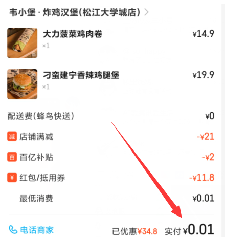 使用了无门槛红包后,1分钱吃到了外卖!重要的是,每天都可以领取!