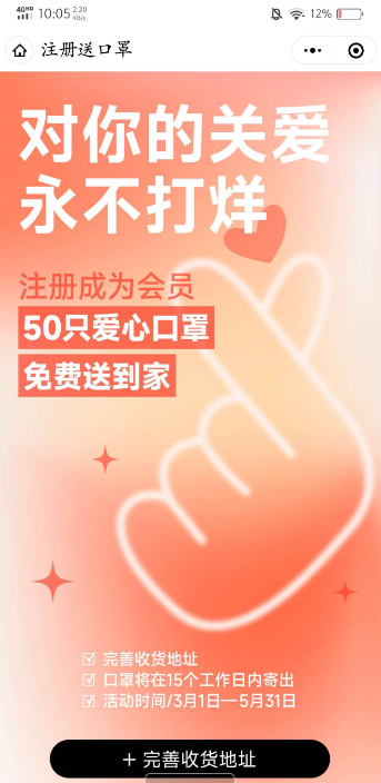 首页 > 活动线报 > 喜临门完善地址领取50只口罩