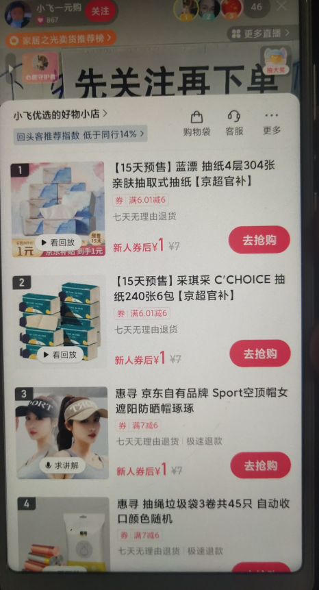 直接打开快手搜索一元购,然后点进直播间,可以换号买,