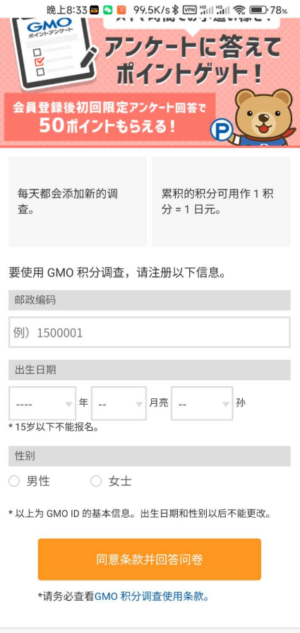 注册好了点那个问卷调查赚钱,然后信息随便填邮箱就填1500001就行,然后按照提示一直点击,出现最后一个页面你就可以重新进入gmo的主页面了[滑稽][玫瑰]