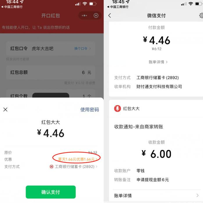 wx小程序搜:开口红然后进去包红包,红包金额必须大于立减金金额,