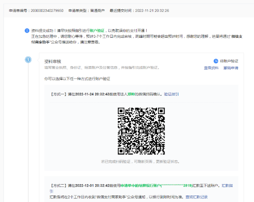 ,自己的卡号,自己的其他的我这里就不填写了,直接下一步,然后资质审核选择法人扫一扫,然后这里就注册完成了,就等着审核签约