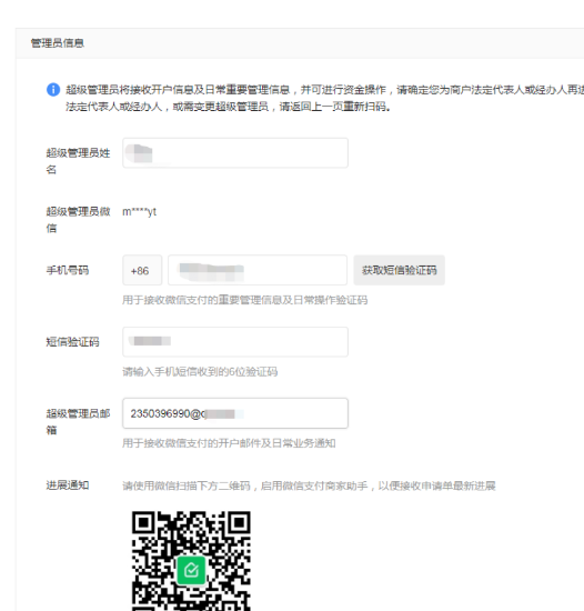 手机号码填写自己的,验证码输入超级管理员邮箱填写自己的,然后呢扫一扫验证,