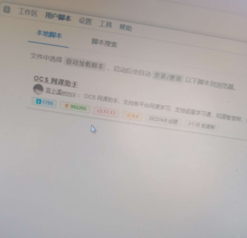左上角 => 用户脚本 => 搜索脚本 => 搜索OCS网课助手 => 点击 添加