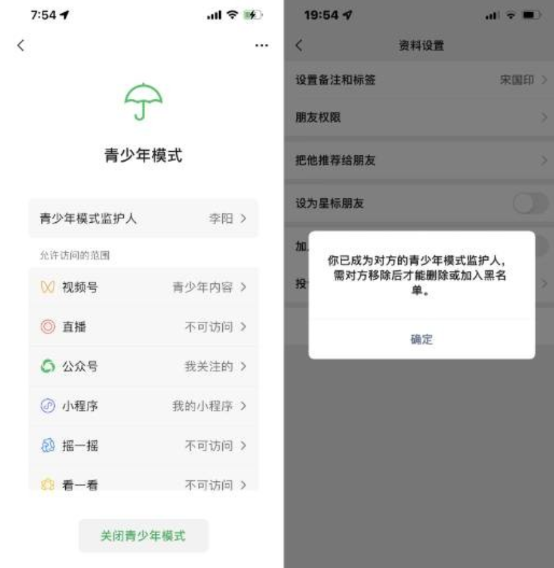 4.在她微信青年模式哪里会显示你微信昵称表示成功了,对方就没办法删除你和加入黑名单[滑稽][玫瑰]