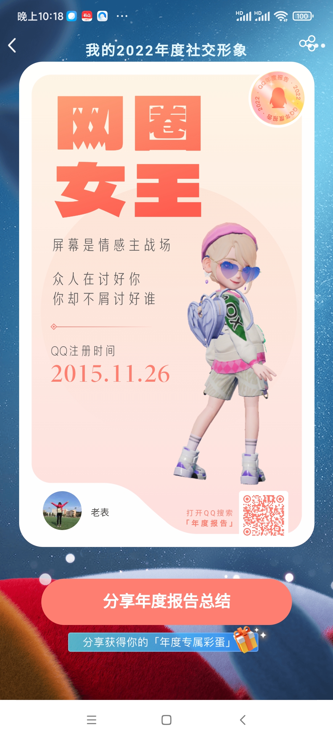 QQ2022年度报告上线 查看你的QQ注册时间,里面可以看经常聊的人 首次上传的照片,到最后还能看注册时间。