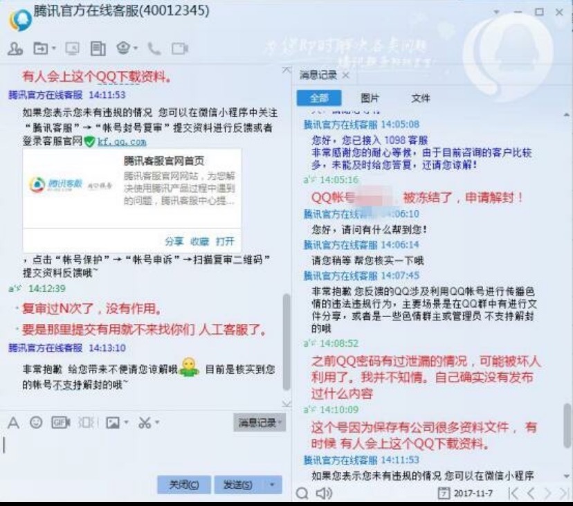 下面再附上一张参考图:联系腾讯QQ客服沟通处理结果截图,切记,沟通图一定要有腾讯