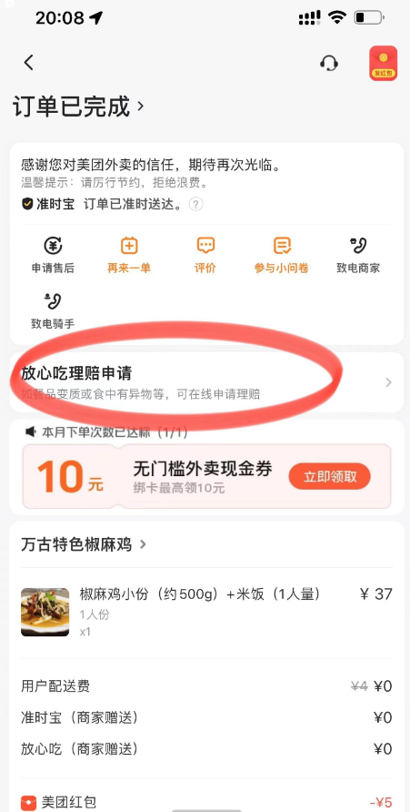 接下来的页面的外卖都可以买(控制下金额,几十块随便下) 【测试过173也秒赔】可以不去找客服,他会查记录,直接去那个安心吃那儿申请赔付