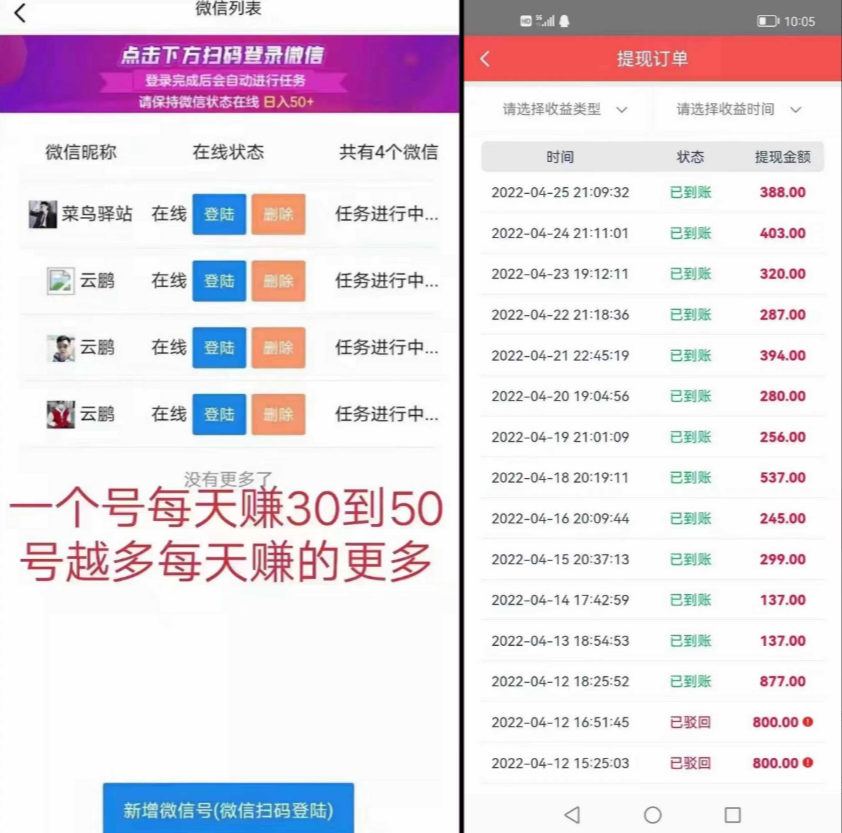 建议挂小号即可 也可去推下级赚提成 每天稳定30~50元