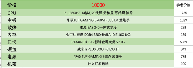 首页 > 技术教程 > 一千到一万元电脑配置推荐