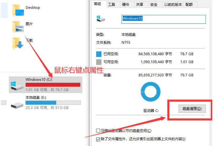 方法如下: 1、打开我的电脑,在C盘上面右键单击,选择属性: 2、然后点击清理磁盘,选择在自己要删掉的垃圾文件 接下来等待几分钟的样子,清理好就OK了,强迫症! 小编亲测清理了一下,内存多出了差不多4.9GB