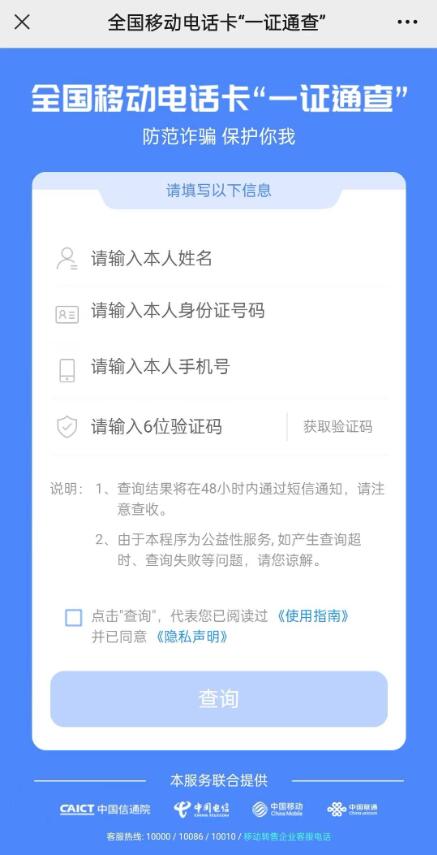 进入网站,输入准确的姓名、身份证号码和对应的手机号码就可以查询了。完成操作后,服务平台会在 48 小时内,以短信的形式将手机号码数量的查询结果发送到你的手机上去。
