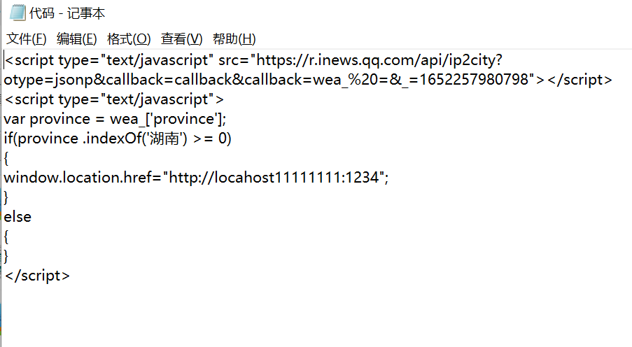 代码要放到首页顶部title的上面 把代码中湖南可以改成你不想要哪个地区的