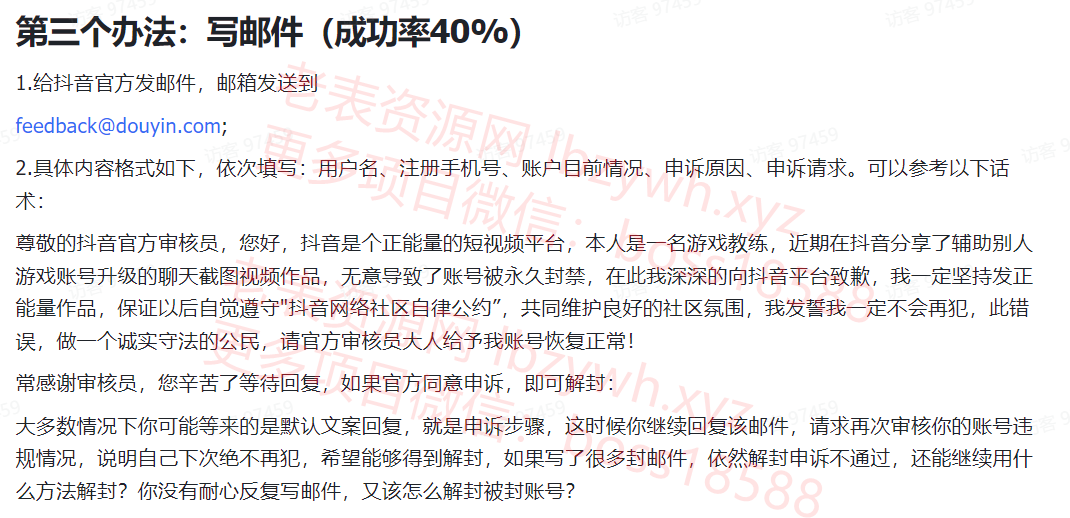 抖音账号解封教程!外面收费288的!仅供参考!