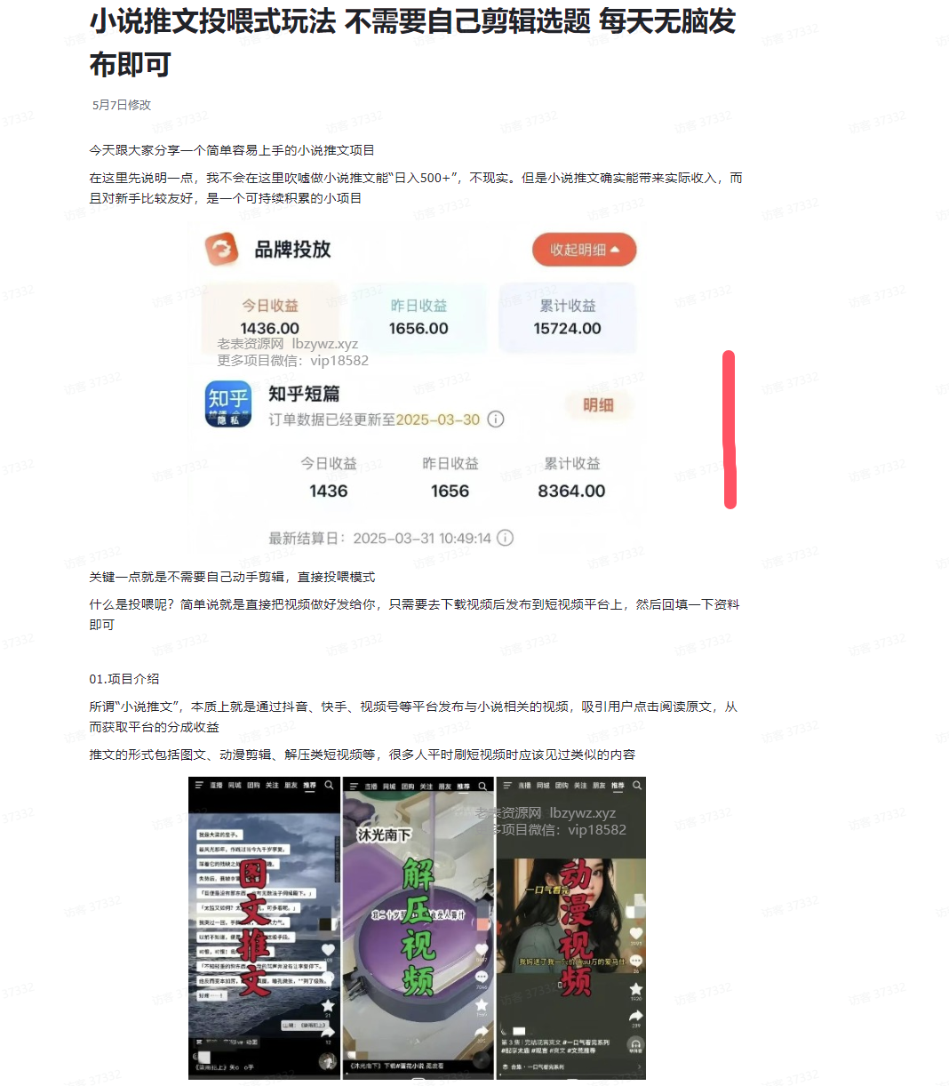 首页 > 技术教程 > 小说推文投喂式玩法 不需要自己剪辑选题 每天无脑发布即可