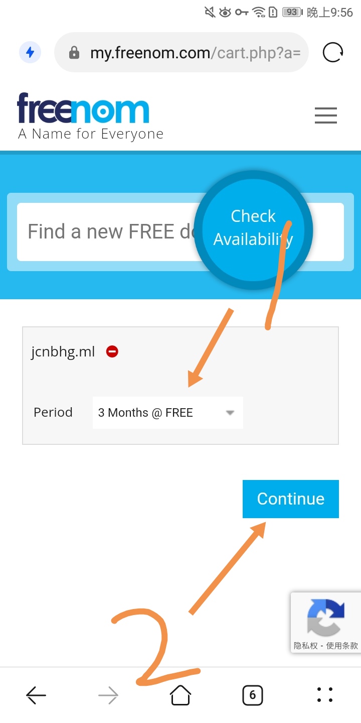 2.在首页的编辑框输入域名(记得带上五大免费域名后辍防止出现意外[滑稽]),然后点击CheckAvailability(图一)